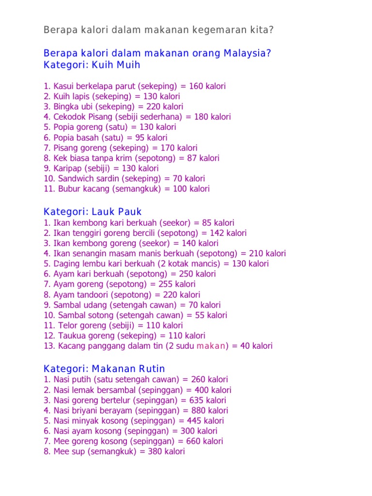 Berapa Kalori Dalam Makanan Kegemaran Kita Pdf